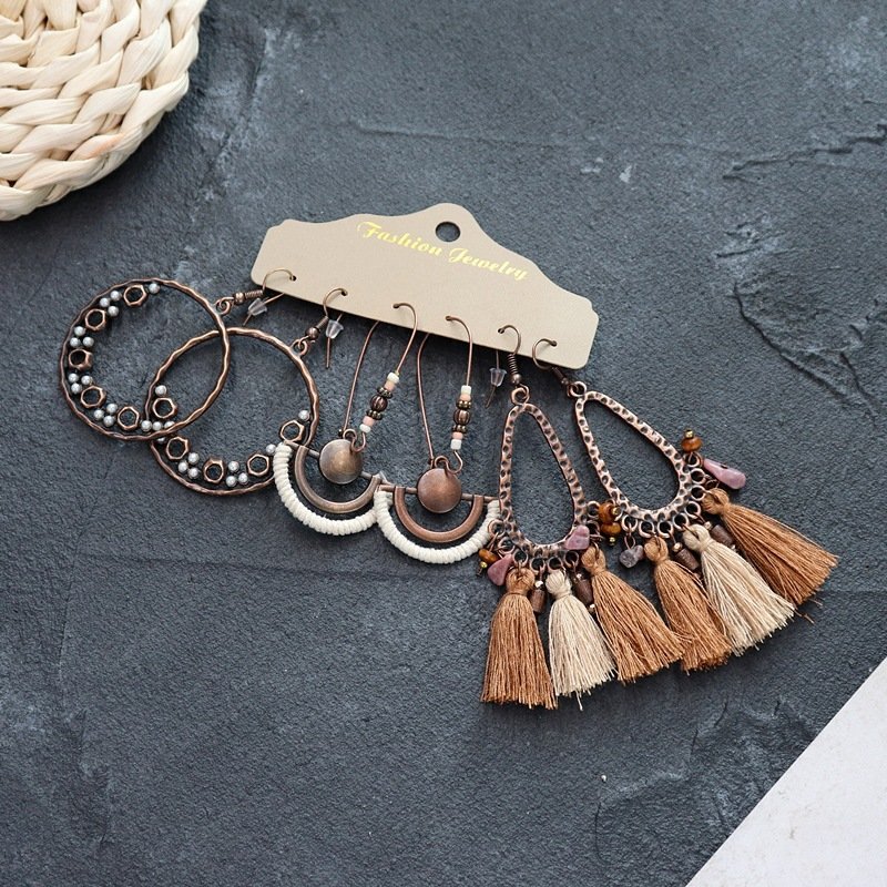 Bohemian Ethnic Style Elegant Earrings Long Retro Vacation Beach Simple Stud Earrings Versatile Earring Set-27