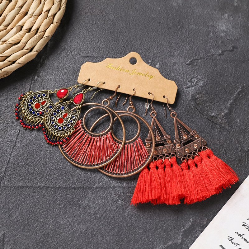 Bohemian Ethnic Style Elegant Earrings Long Retro Vacation Beach Simple Stud Earrings Versatile Earring Set-42