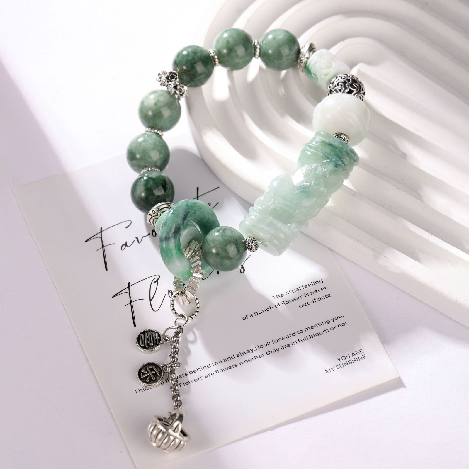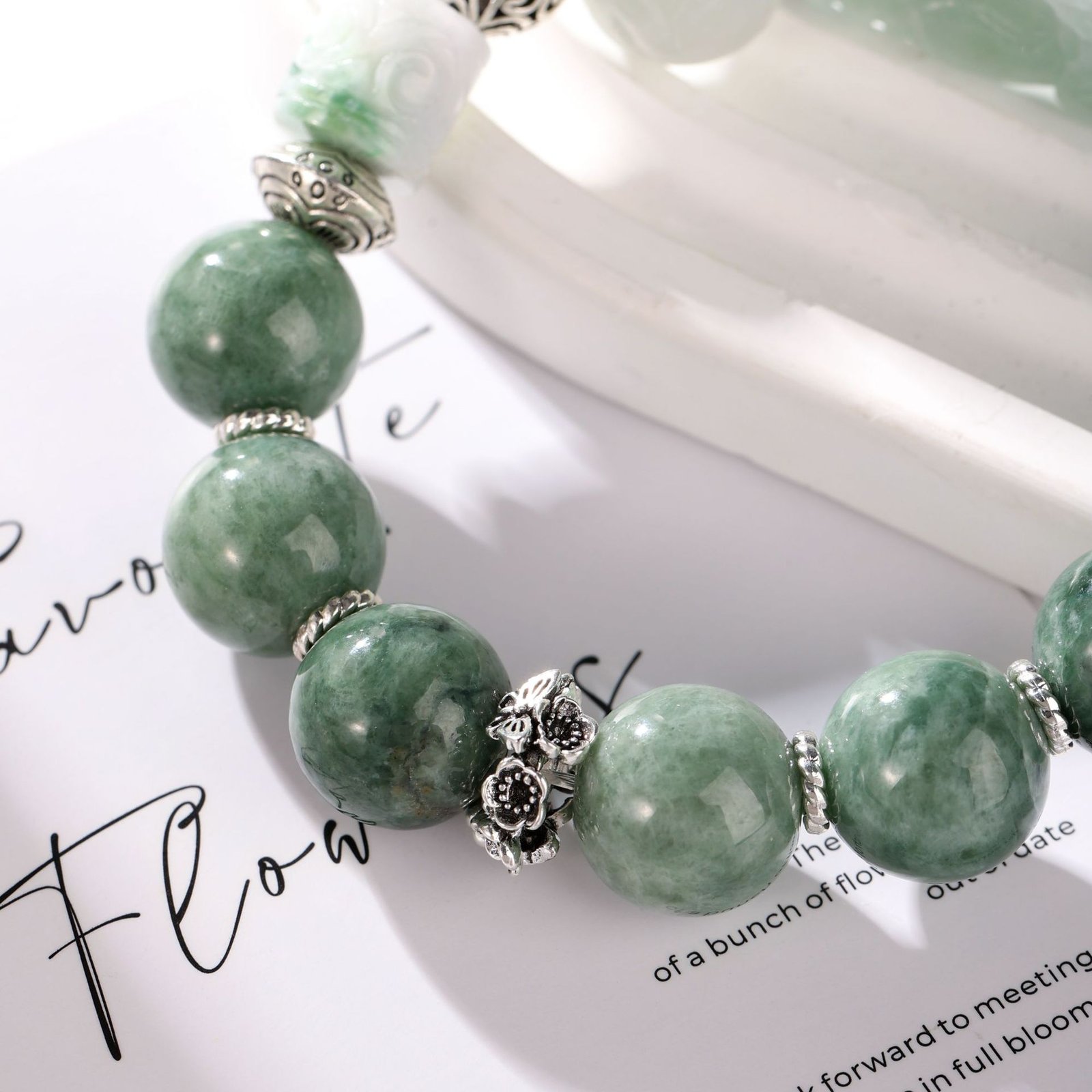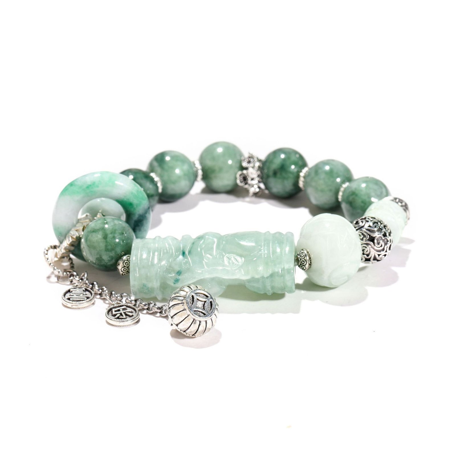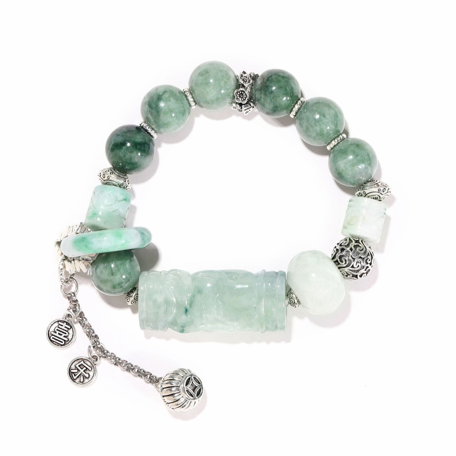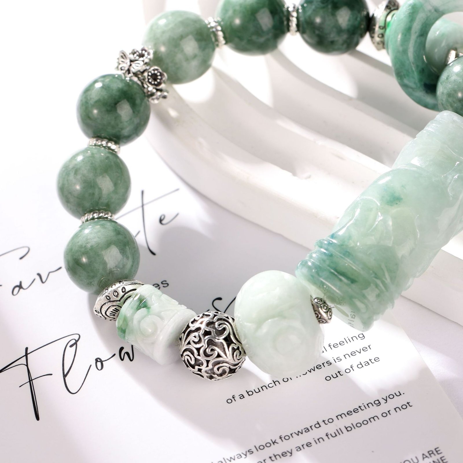 Natural Jadeite Carved Cylinder Beads Crystal Bracelet