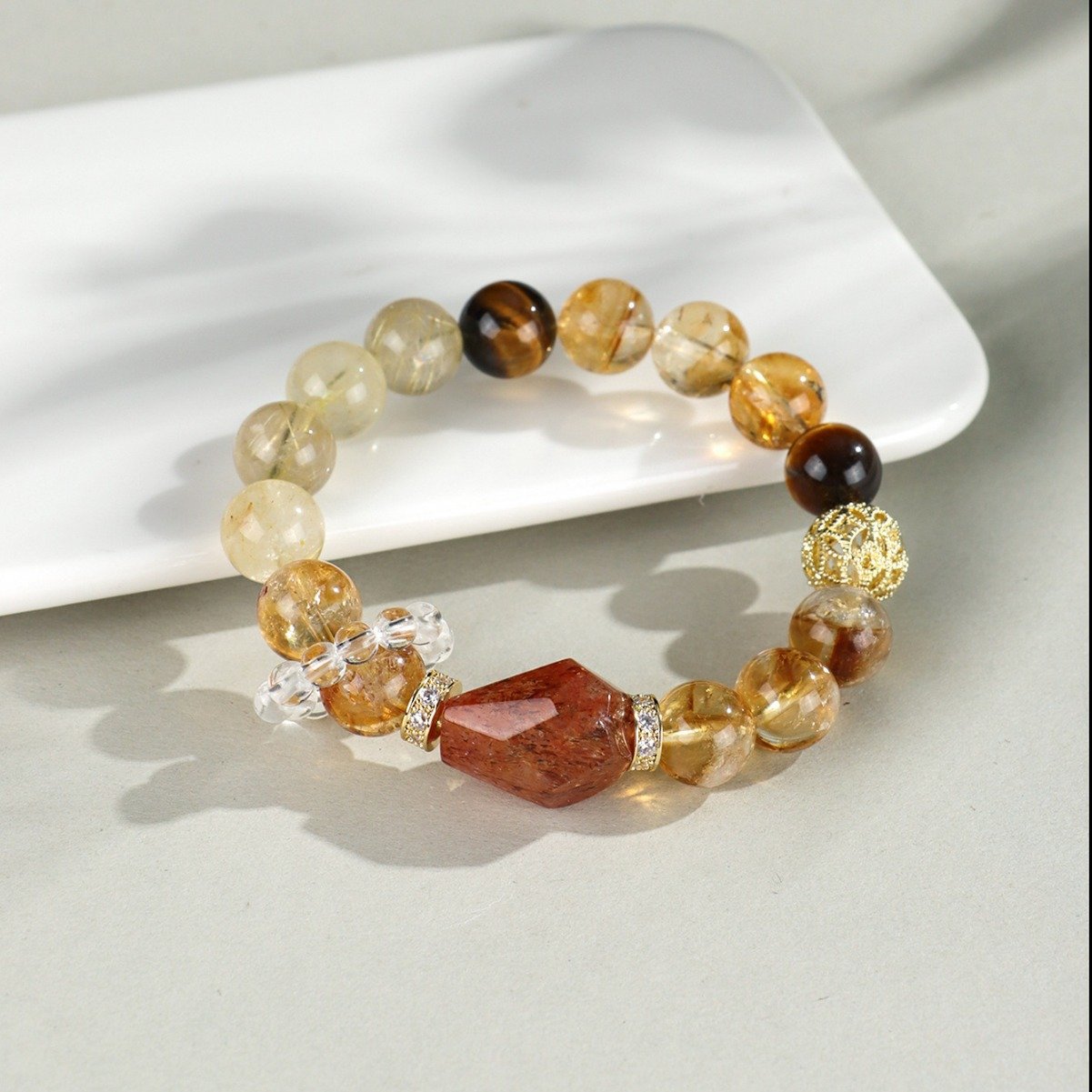 New Arrival Natural Yellow Tower Crystal Multi-Treasure Black Gold Super Seven-Sided Bead Bracelet for Women